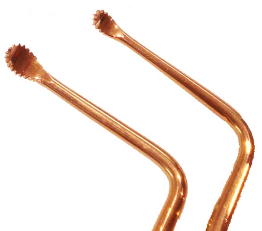 Titanium coated, extra sharp, efficient curettes. Serrated edges LOCK onto granulation tissue for faster, more efficient removal. Titanium coated tips stay sharp over 3x as long as conventional steel.