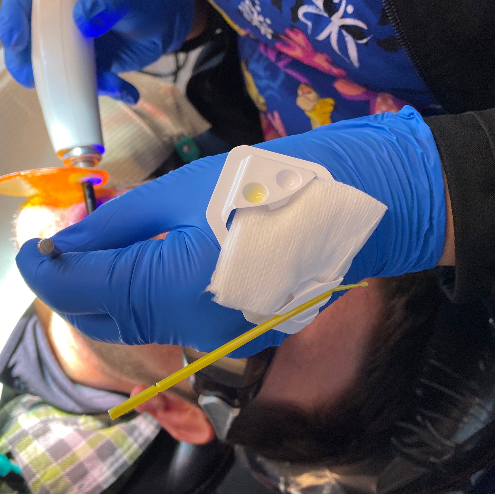la microbandeja autoadhesiva se adhiere a su guante para acceder rápidamente a 2
