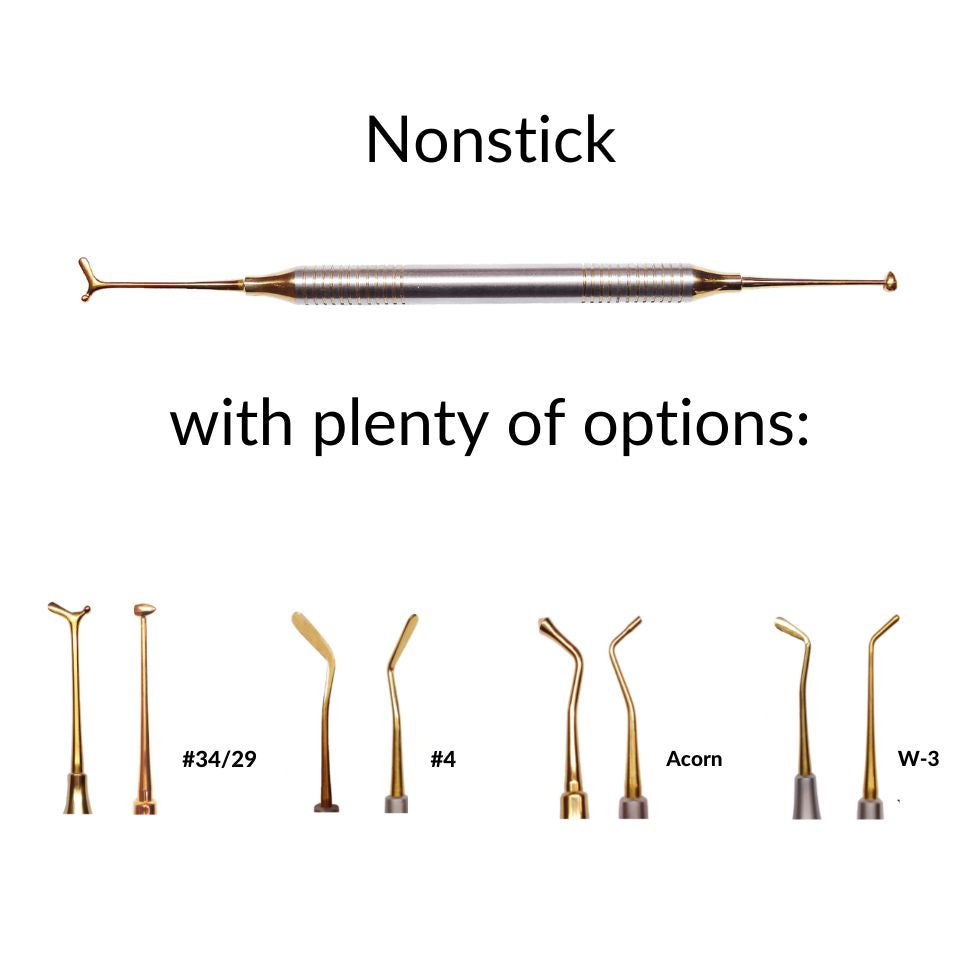 Los populares instrumentos CompPlus™ están recubiertos de titanio, lo que los convierte en los mejores instrumentos de obturación compuestos antiadherentes disponibles. Este paquete triple ahorrará tiempo y hará que los procedimientos de obturación de compuestos sean rápidos y eficientes. Cuanto más preciso pueda premoldear sus composites antes de fotopolimerizar, más menos tiempo que dedica a la reducción bruta y al pulido.