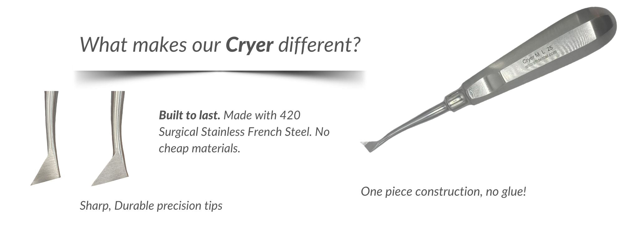Dentistry's most powerful elevators. Highest quality metal with sharp tips for maximum purchase power. Great for bombed out or sectioned molars and wisdom teeth.