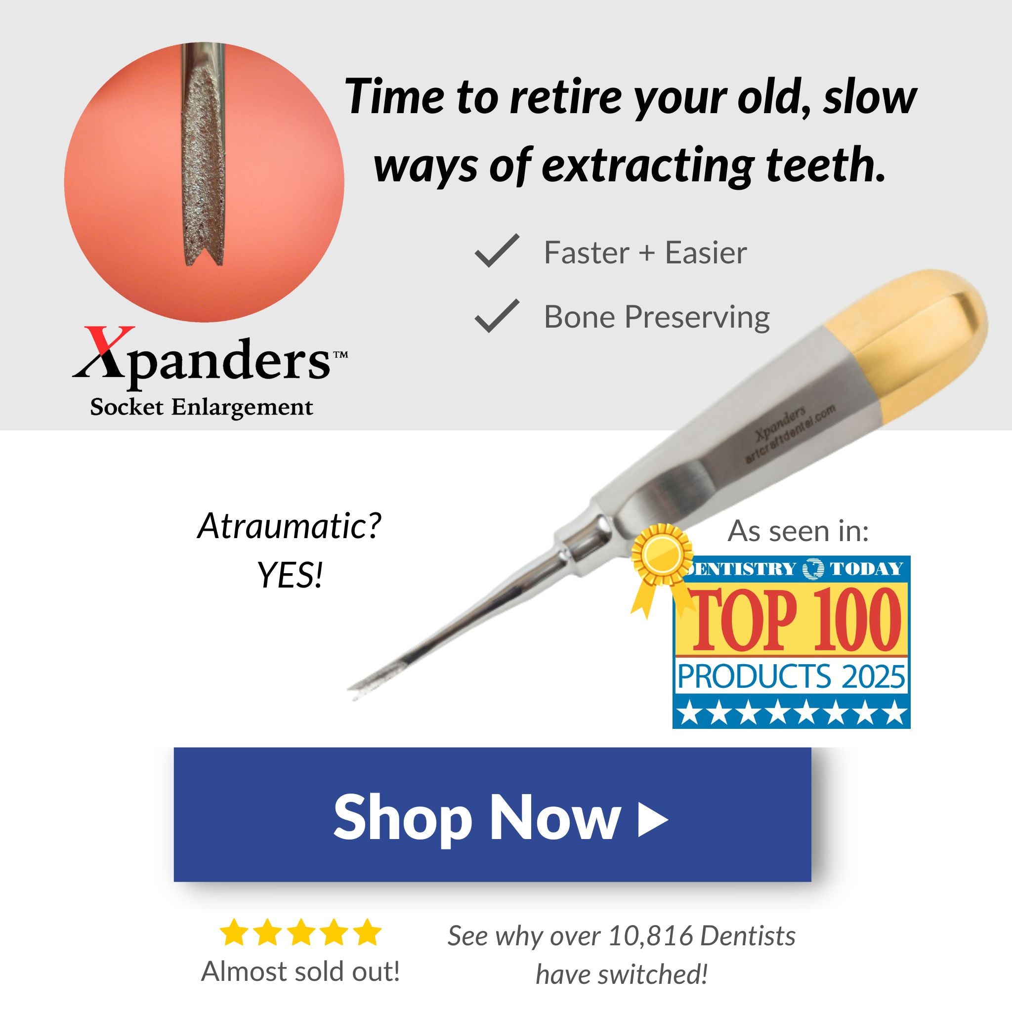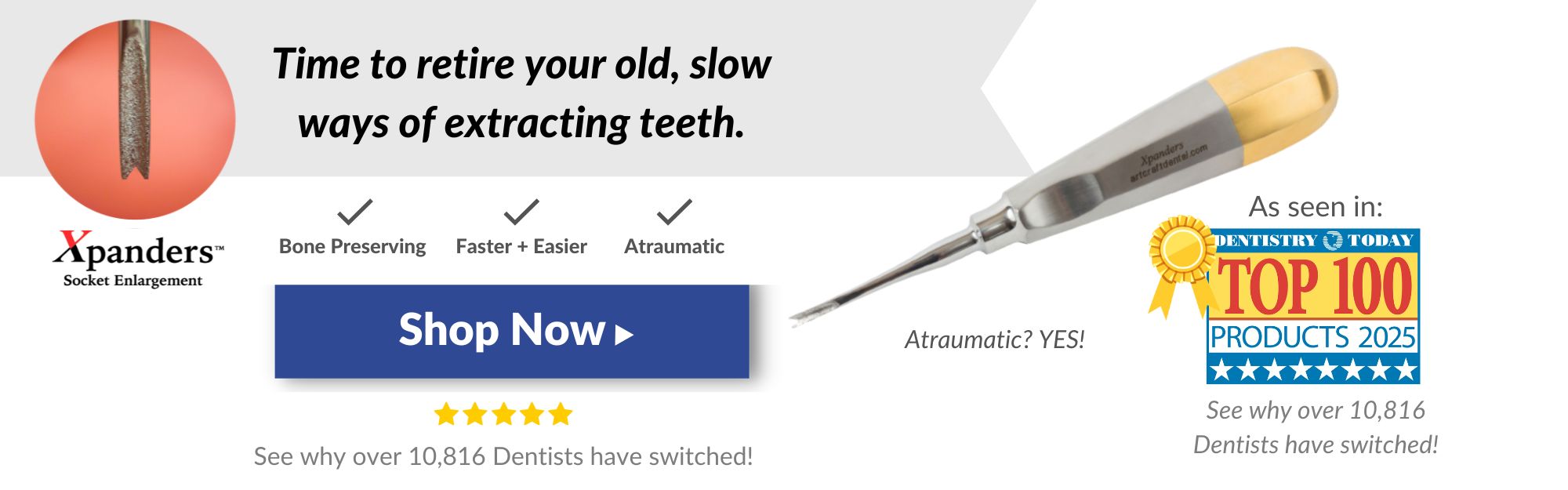 Our double tip design gives you more power and faster results than Luxators and Proximators. Your extractions will become efficient and predictable with less chance of root tip breakage.