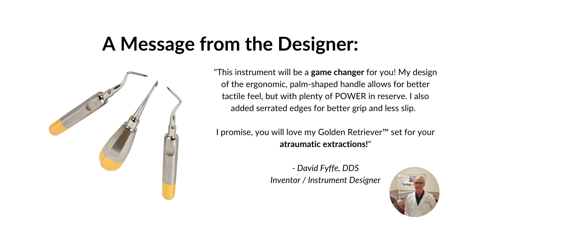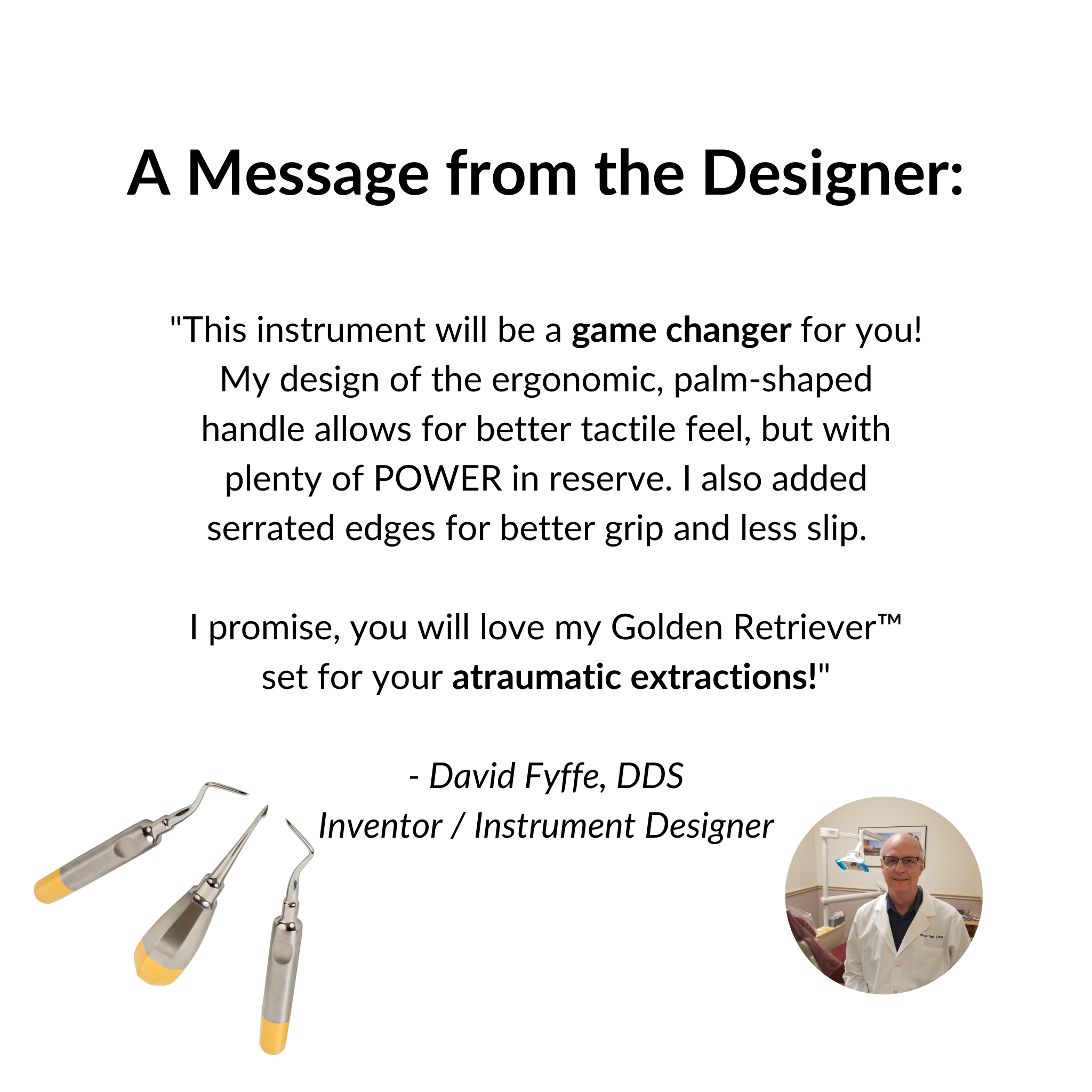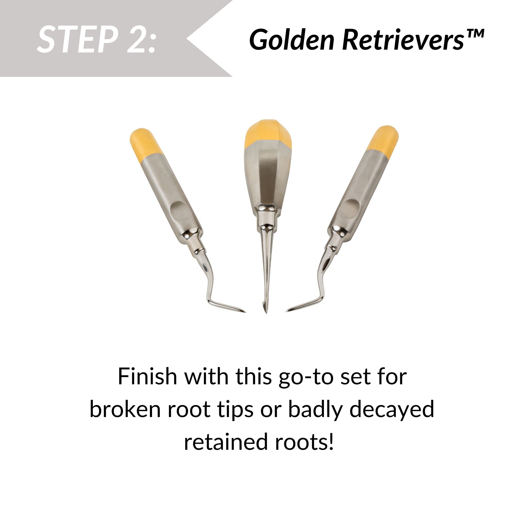 Your new go-to set for broken root tips or badly decayed retained roots! When you use the right tools, You will find that getting out of these situations is faster and easier. With this Gold-N-Retrievers™ set, you save time and remove stress.
